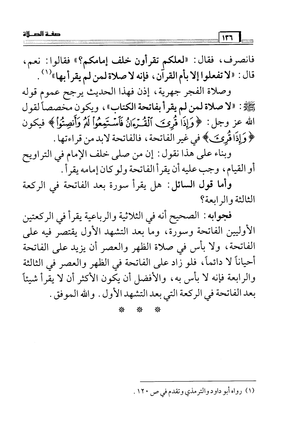 وصلاة الفجر جهرية، إذن فهذا الحديث يرجع عموم قوله صَلَّى اللَّهُ عَلَيْهِ وَسَلَّمَ: "لا صلاة لمن لم يقرأ بفاتحة الكتاب"، ويكون مخصصاً لقول الله عز وجل: (وَإِذَا قُرِئَ الْقُرْآنُ فَاسْتَمِعُوا لَهُ وَأَنْصِتُوا) فيكون (وَإِذَا قُرِئَ) في غير الفاتحة، فالفاتحة لابد من قراءتها.