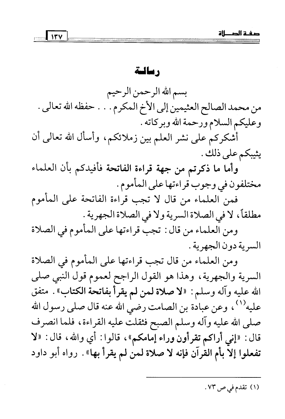 من محمد الصالح العثيمين إلى الأخ المكرم حفظه الله تعالى.