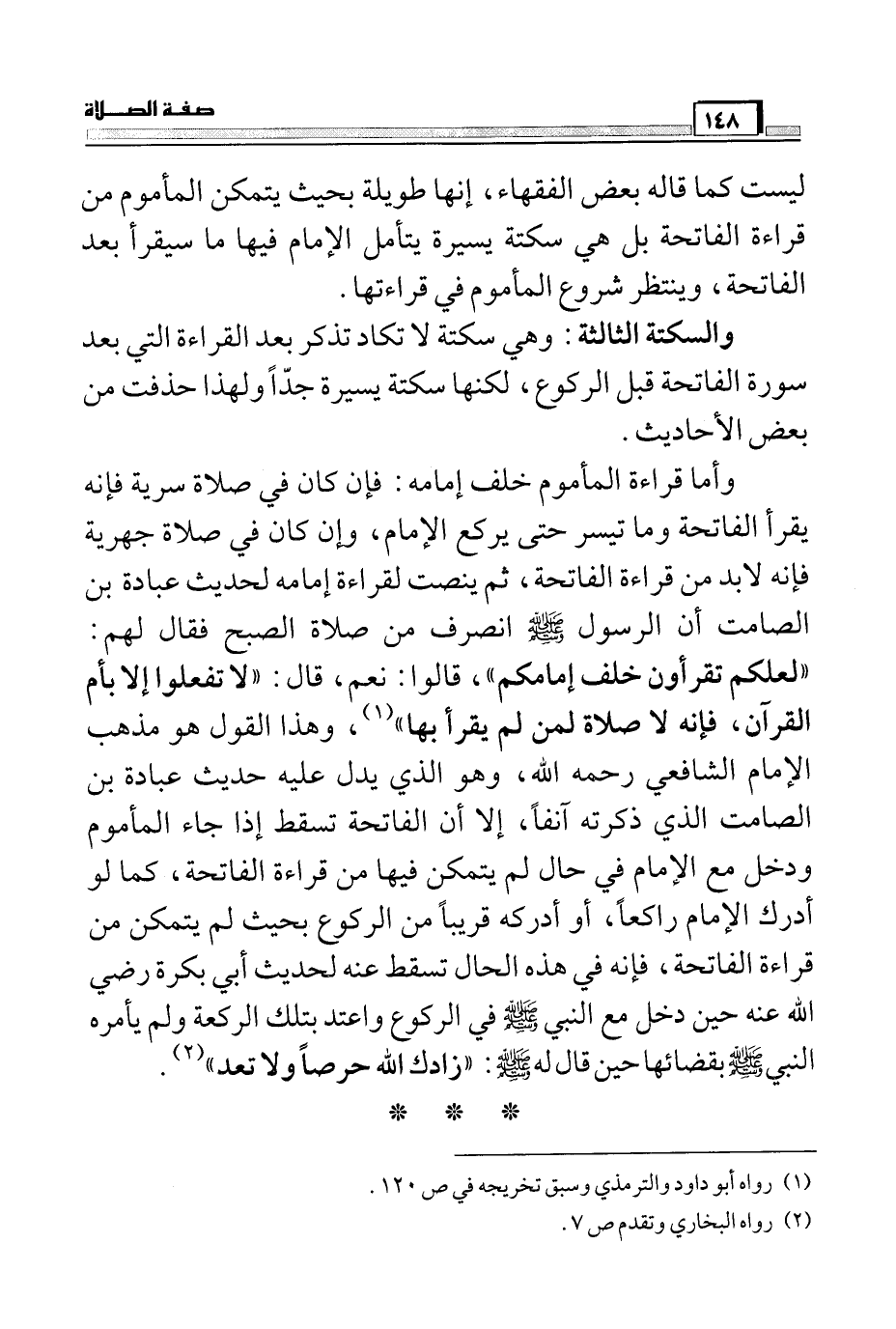 ليست كما قاله بعض الفقهاء، إنها طويلة بحيث يتمكن المأموم من قراءة الفاتحة بل هي سكتة يسيرة يتأمل الإمام فيها ما سيقرأ بعد الفاتحة، وينتظر شروع المأموم في قراءتها.
