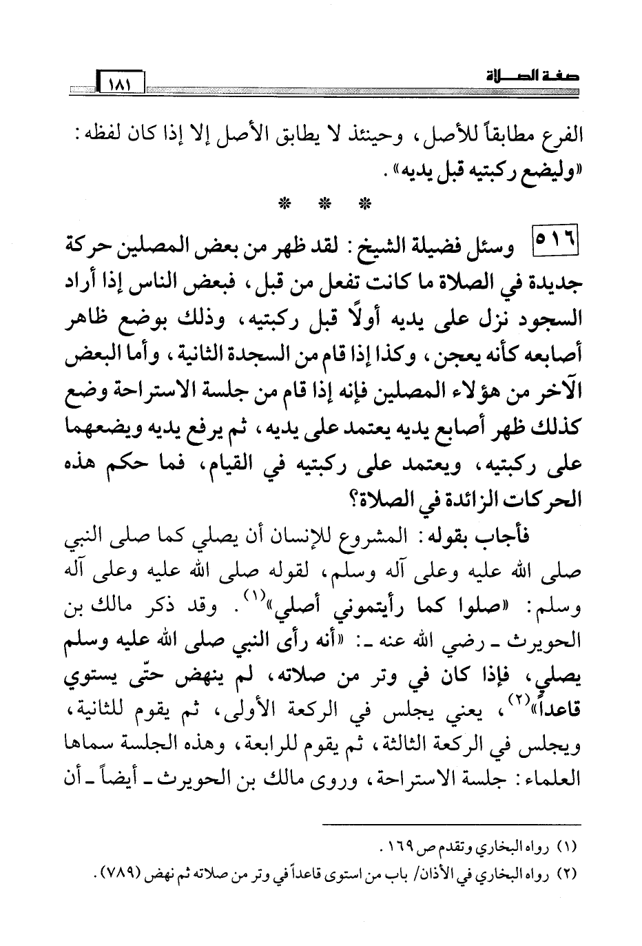 (¬2) رواه البخاري في الأذان/ باب من استوى قاعداً في وتر من صلاته ثم نهض (789) .