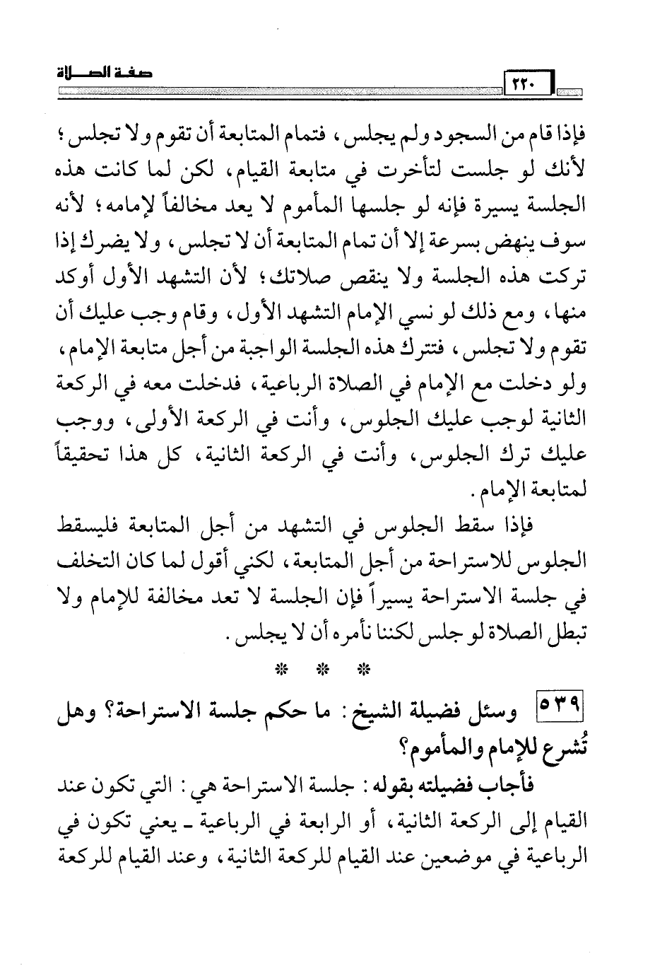 539 وسئل فضيلة الشيخ: ما حكم جلسة الاستراحة؟ وهل تشرع للإمام والمأموم؟