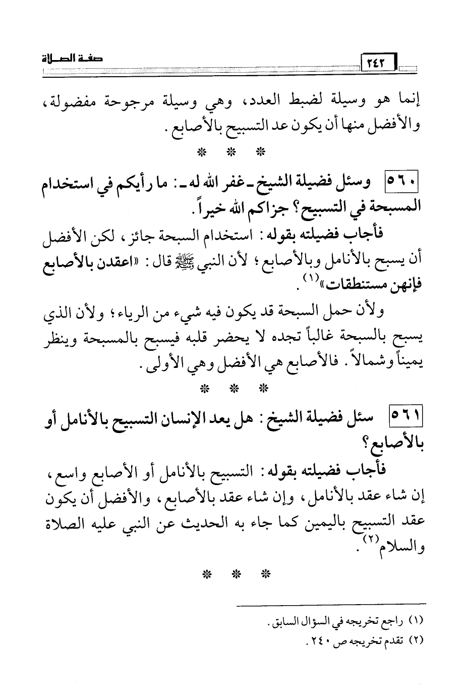 560 وسئل فضيلة الشيخ – غفر الله له-: ما رأيكم في استخدام المسبحة في التسبيح؟ جزاكم الله خيراً.