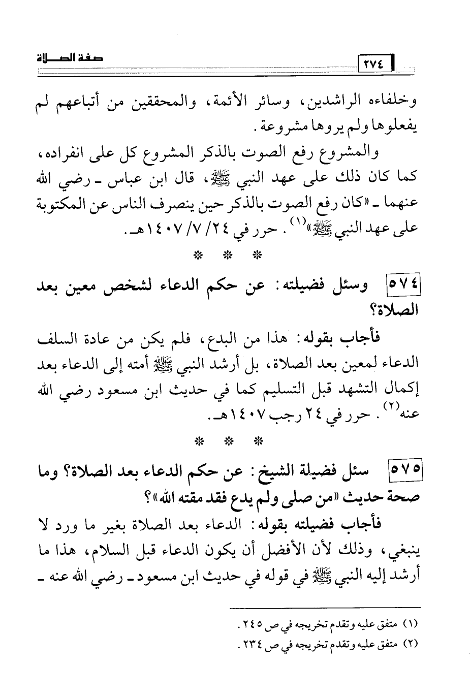 574 وسئل فضيلته: عن حكم الدعاء لشخص معين بعد الصلاة؟