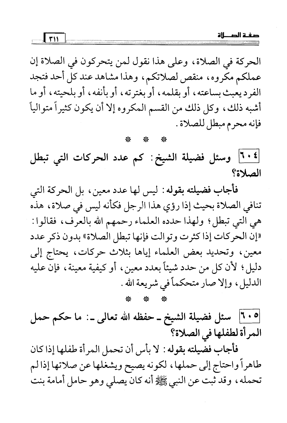 604 وسئل فضيلة الشيخ: كم عدد الحركات التي تبطل الصلاة؟