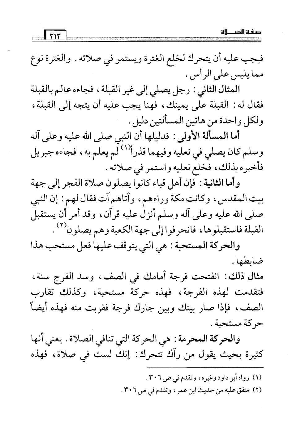 مثال ذلك: انفتحت فرجة أمامك في الصف، وسد الفرج سنة، فتقدمت لهذه الفرجة، فهذه حركة مستحبة، وكذلك تقارب الصف، فإذا صار بينك وبين جارك فرجة فقربت منه فهذه أيضاً حركة مستحبة.