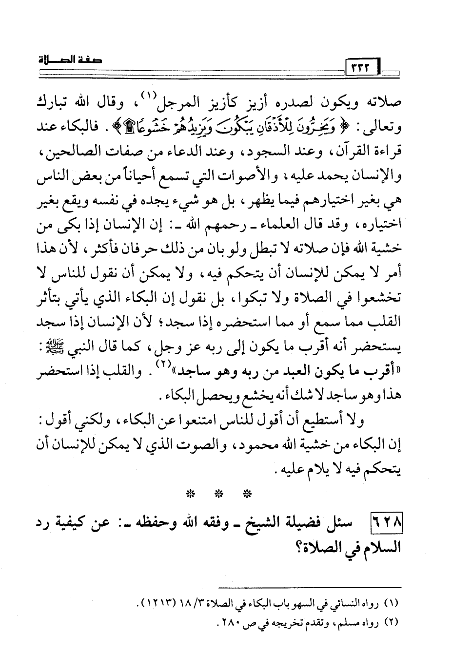 628 سئل فضيلة الشيخ – وفقه الله وحفظه -: عن كيفية رد السلام في الصلاة؟