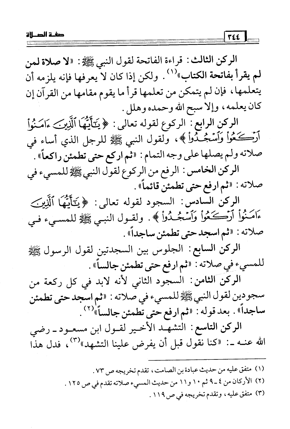 (¬2) الأركان من 4-9 ثم 10 و11 من حديث المسيء صلاته تقدم في ص125.