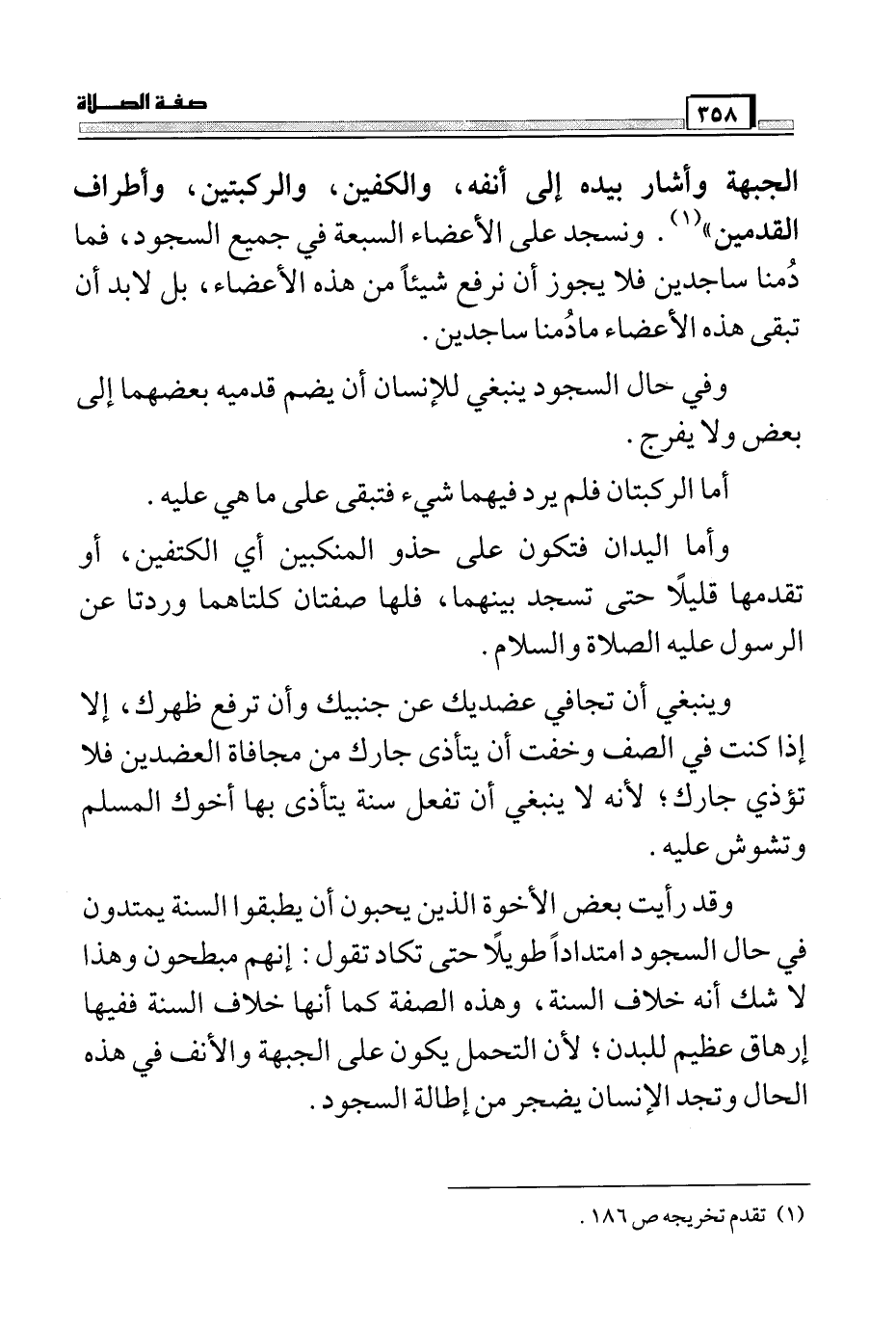 وقد رأيت بعض الأخوة الذين يحبون أن يطبقوا السنة يمتدون في حال السجود امتداداً طويلاً حتى تكاد تقول: إنهم مبطحون وهذا لا شك أنه خلاف السنة، وهذه الصفة كما أنها خلاف السنة ففيها إرهاق عظيم للبدن؛ لأن التحمل يكون على الجبهة والأنف في هذه الحال وتجد الإنسان يضجر من إطالة السجود.