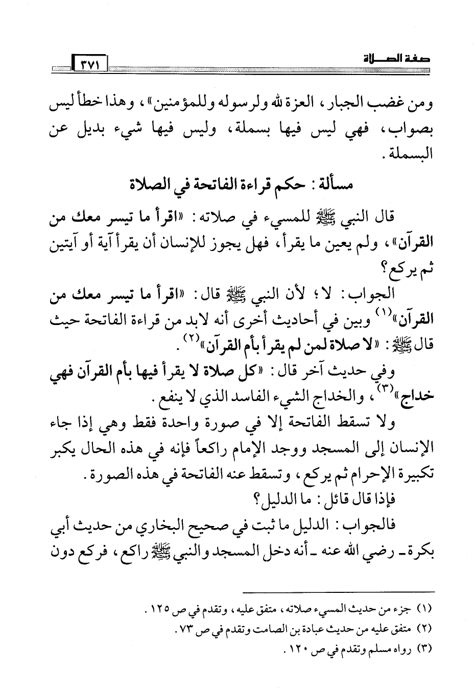 (¬1) جزء من حديث المسيء صلاته، متفق عليه، وتقدم في ص125.