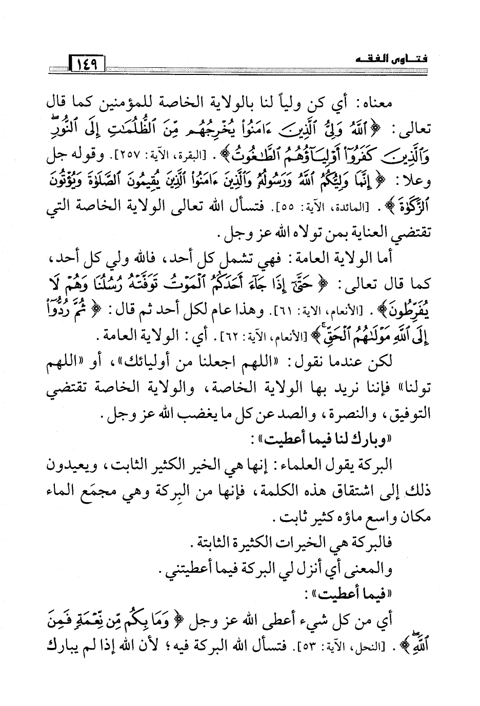 لكن عندما نقول: "اللهم اجعلنا من أوليائك"، أو "اللهم تولنا" فإننا نريد بها الولاية الخاصة، والولاية الخاصة تقتضي التوفيق، والنصرة، والصد عن كل ما يغضب الله عز وجل.