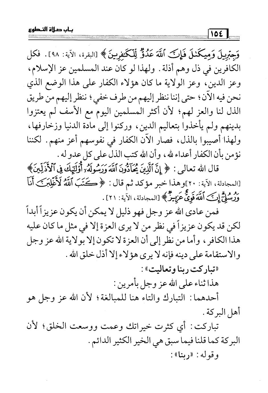 وَجِبْرِيلَ وَمِيكَالَ فَإِنَّ اللَّهَ عَدُوٌّ لِلْكَافِرِينَ) (البقرة: 98) . فكل الكافرين في ذلك وهم أذلة. ولهذا لو كان عند المسلمين عز الإسلام، وعز الدين، وعز الولاية ما كان هؤلاء الكفار على هذا الوضع الذي نحن فيه الآن؛ حتى إننا ننظر إليهم من طرف خفي؛ ننظر إليهم من طريق الذل لنا والعز لهم؛ لأن أكثر المسلمين اليوم مع الأسف لم يعتزوا بدينهم ولم يأخذوا بتعاليم الدين، وركنوا إلى مادة الدنيا وزخارفها، ولهذا أصيبوا بالذل، فصار الآن الكفار في نفوسهم أعز منهم. لكننا نؤمن بأن الكفار أعداء الله، وأن الله كتب الذل على كل عدو له.