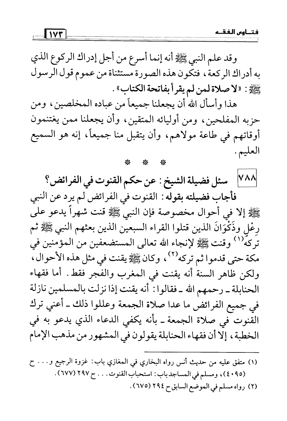 788 سئل فضيلة الشيخ: عن حكم القنوت في الفرائض؟