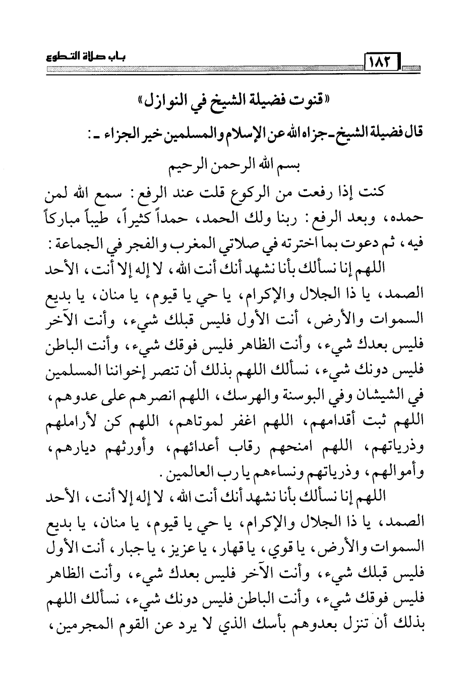 اللهم إنا نسألك بأنا نشهد أنك أنت الله، لا إله إلا أنت، الأحد الصمد، يا ذا الجلال والإكرام، يا حي يا قيوم، يا منان، يا بديع السموات والأرض، أنت الأول فليس قبلك شيء، وأنت الآخر فليس بعدك شيء، وأنت الظاهر فليس فوقك شيء، وأنت الباطن فليس دونك شيء، نسألك اللهم بذلك أن تنصر إخواننا المسلمين في الشيشان وفي البوسنة والهرسك، اللهم انصرهم على عدوهم، اللهم ثبت أقدامهم، اللهم اغفر لموتاهم، اللهم كن لأراملهم وذرياتهم، اللهم امنحهم رقاب أعدائهم، وأورثهم ديارهم، وأموالهم، وذرياتهم ونساءهم يا رب العالمين.