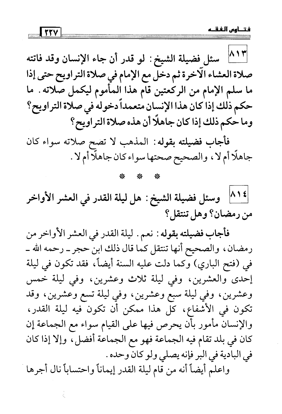 814 وسئل فضيلة الشيخ: هل ليلة القدر في العشر الأواخر من رمضان؟ وهل تنتقل؟