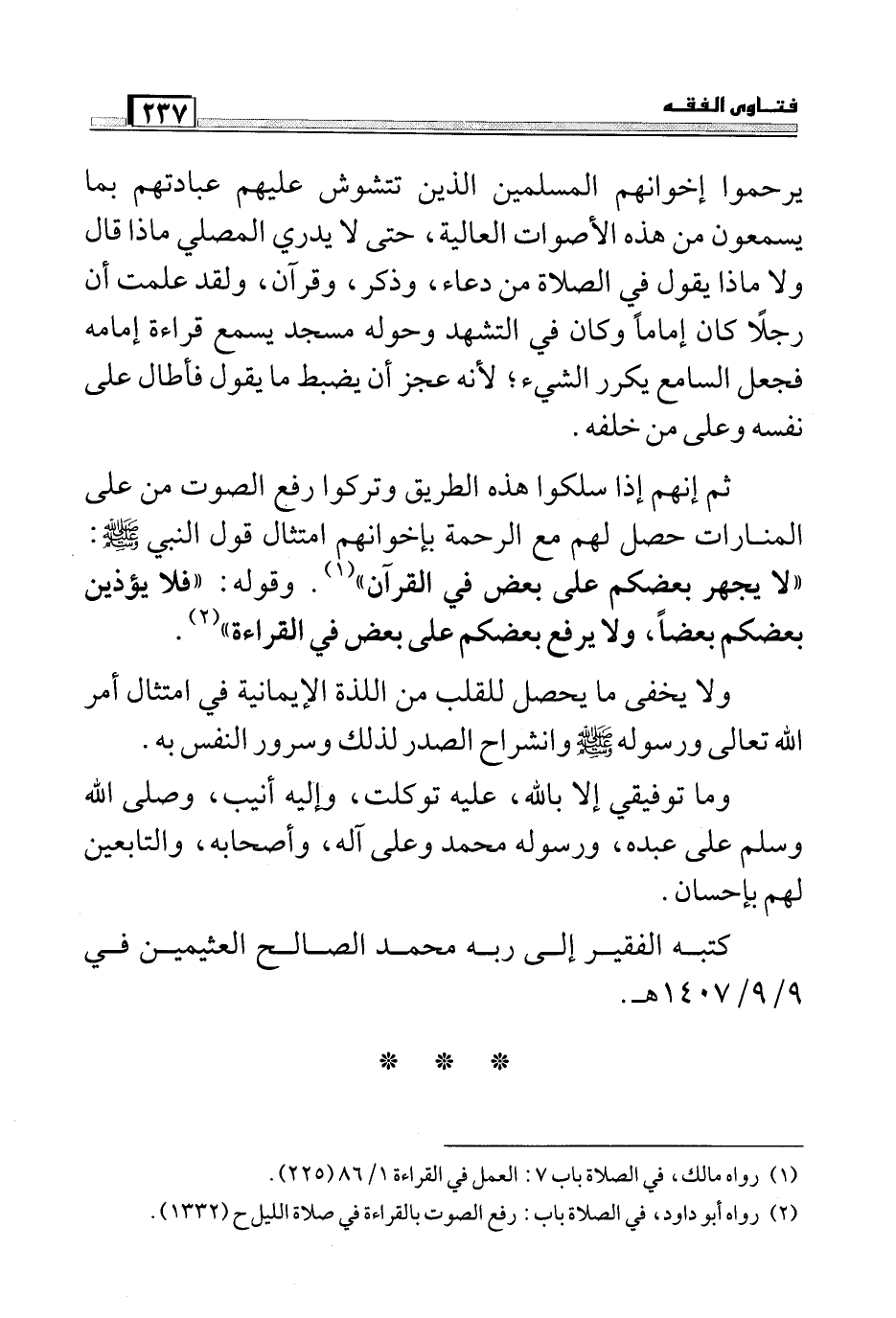 كتبه الفقير إلى ربه محمد الصالح العثيمين في 9/9/1407هـ.