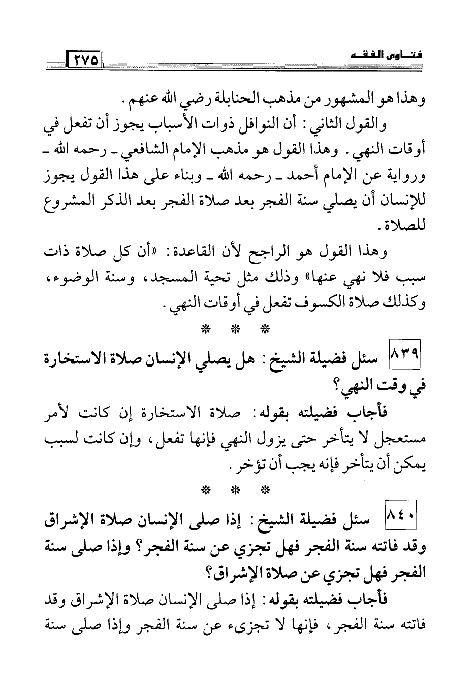 839 سئل فضيلة الشيخ: هل يصلي الإنسان صلاة الاستخارة في وقت النهي؟