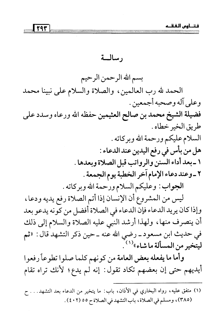 فضيلة الشيخ محمد بن صالح العثيمين حفظه الله ورعاه وسدد على طريق الخير خطاه.