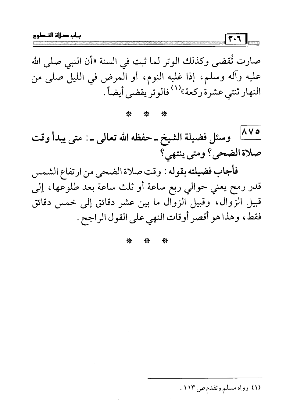 875 وسئل فضيلة الشيخ – حفظه الله تعالى -: متى يبدأ وقت صلاة الضحى؟ ومتى ينتهي؟