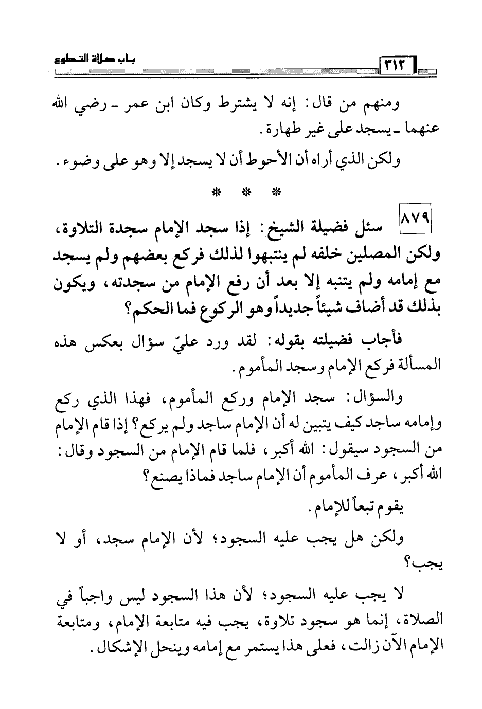 ومنهم من قال: إنه لا يشترط وكان ابن عمر – رضي الله عنهما – يسجد على غير طهارة.