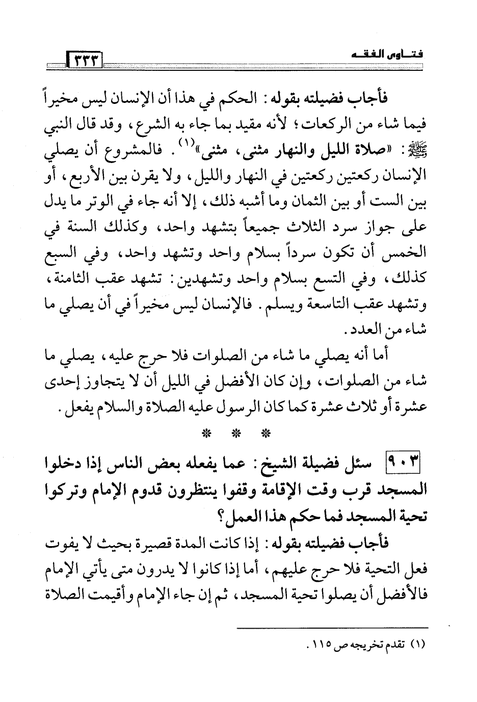 903 سئل فضيلة الشيخ: عما يفعله بعض الناس إذا دخلوا المسجد قرب وقت الإقامة وقفوا ينتظرون قدوم الإمام وتركوا تحية المسجد فما حكم هذا العمل؟