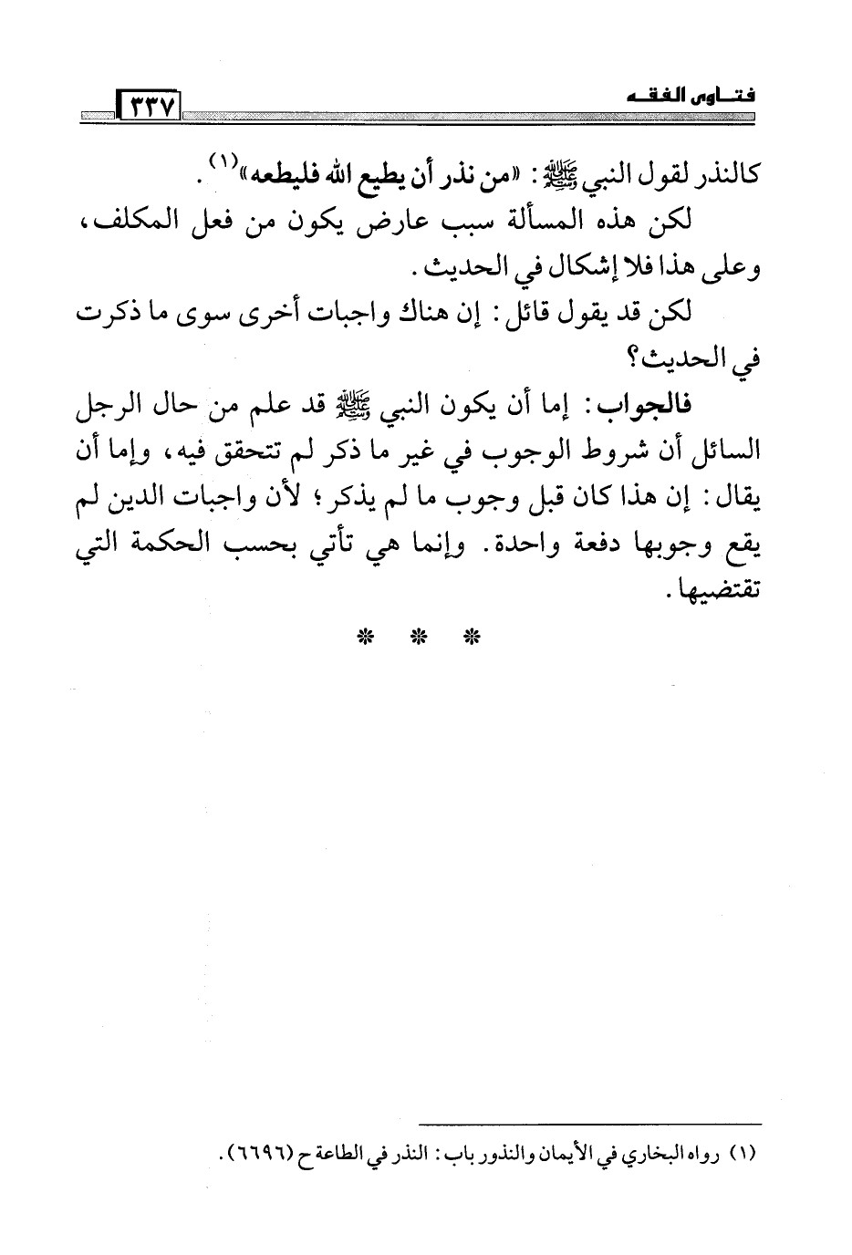 (¬1) رواه البخاري في الإيمان والنذور باب: النذر في الطاعة ح (6696) .