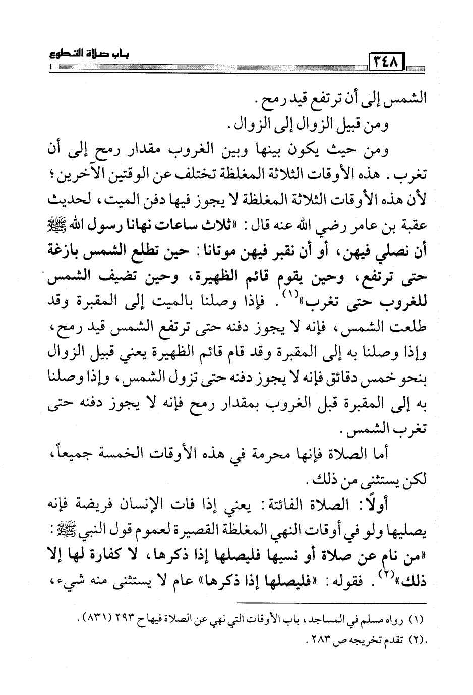 (¬1) رواه مسلم في المساجد، باب الأوقات التي نهي عن الصلاة فيها ح293 (831) .
