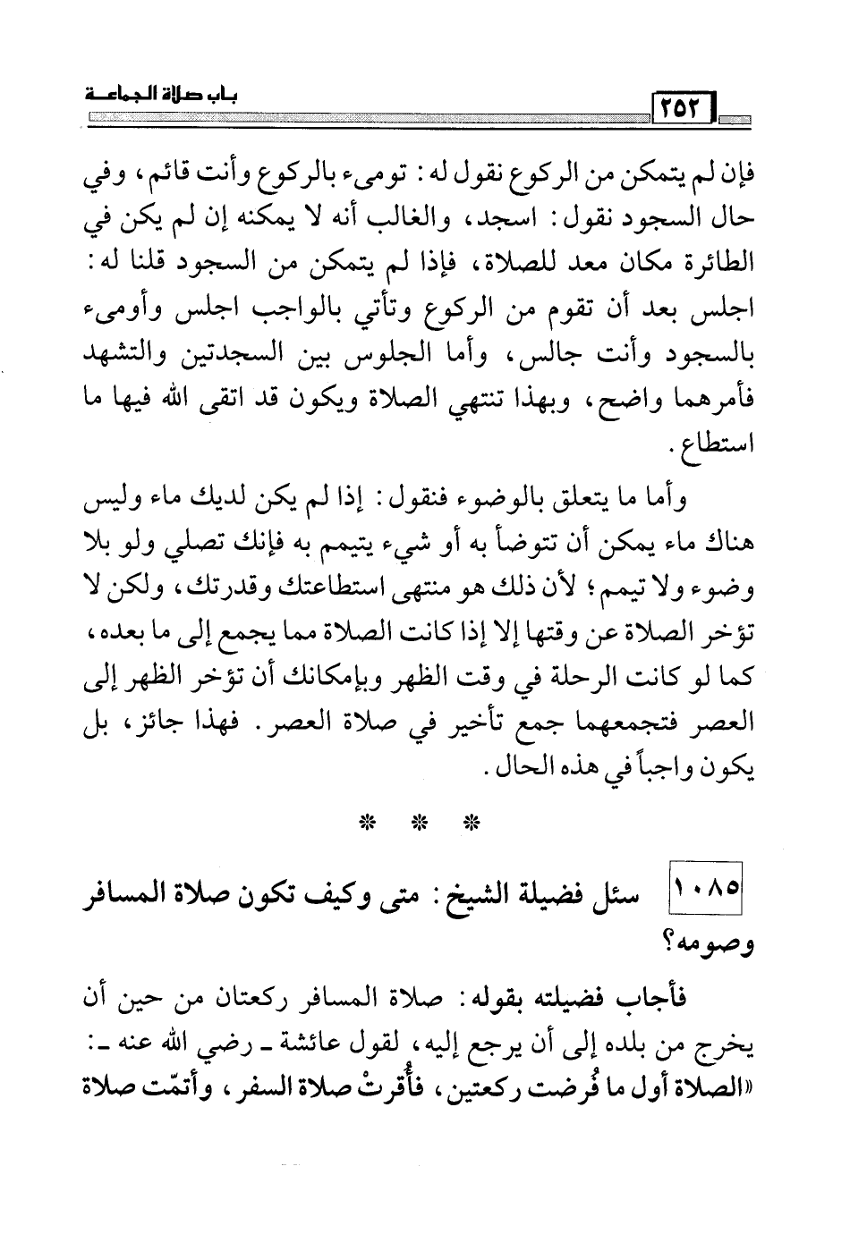 1085 سئل فضيلة الشيخ: متى وكيف تكون صلاة المسافر وصومه؟