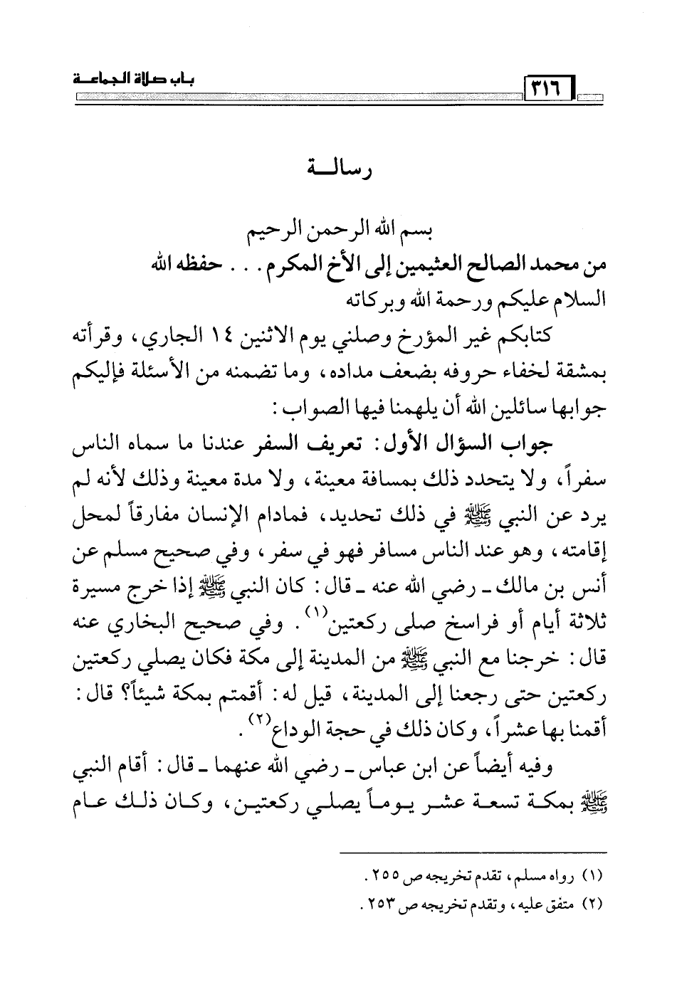 من محمد الصالح العثيمين إلى الأخ المكرم..... حفظه الله