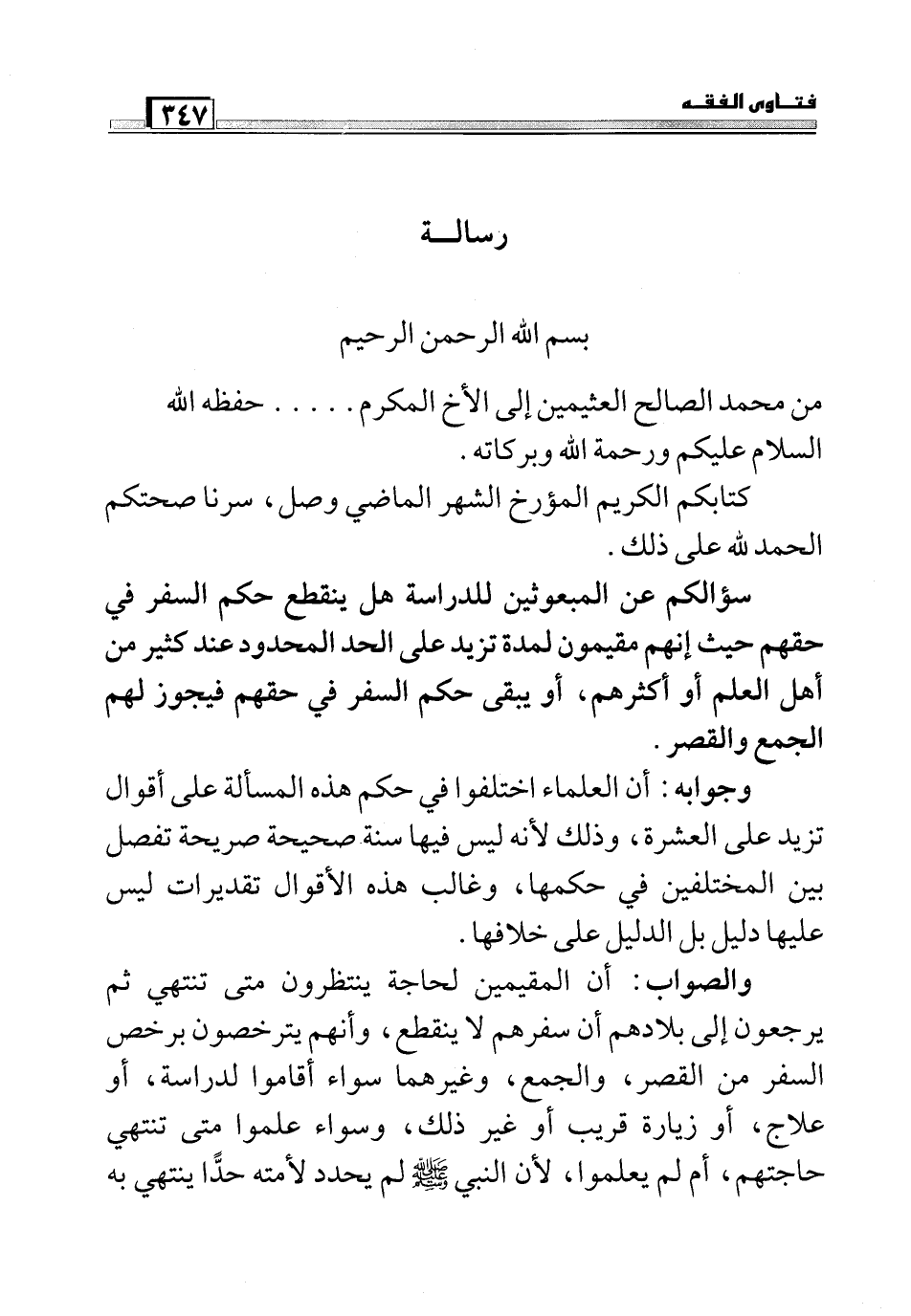 من محمد الصالح العثيمين إلى الأخ المكرم. . . . . حفظه الله