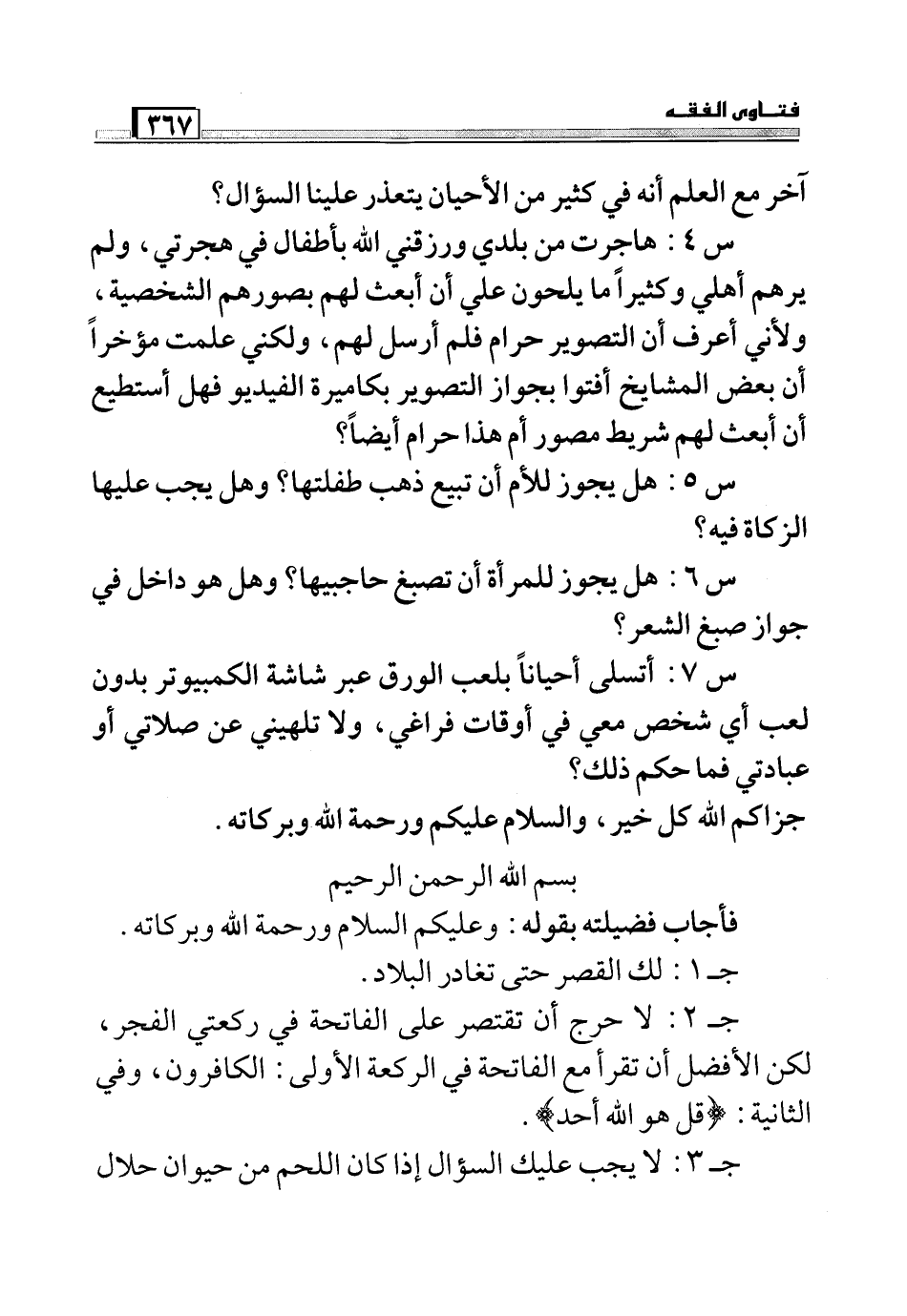 س4:هاجرت من بلدي ورزقني الله بأطفال في هجرتي, ولم يرهم أهلي وكثيراً ما يلحون علي أن أبعث لهم صورهم الشخصية, ولأني أعرف أن التصوير حرام فلم أرسل لهم, ولكني علمت مؤخراً أن بعض المشايخ أفتوا بجواز التصوير بكاميرا الفيديو فهل أستطيع أن أبعث لهم شريط مصور أم هذا حرام أيضاً؟