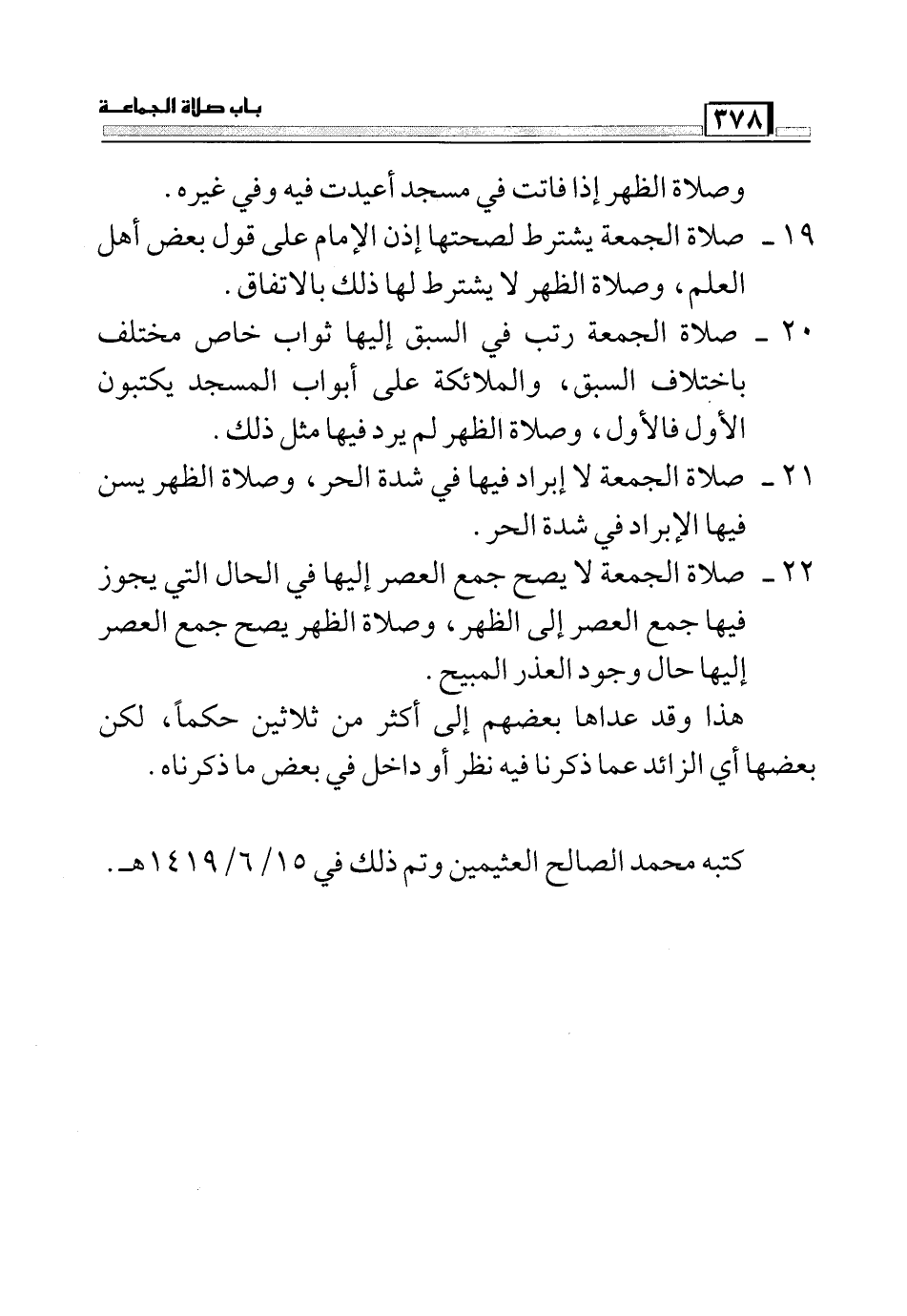 كتبه محمد الصالح العثيمين وتم ذلك في 15/6/1419هـ.