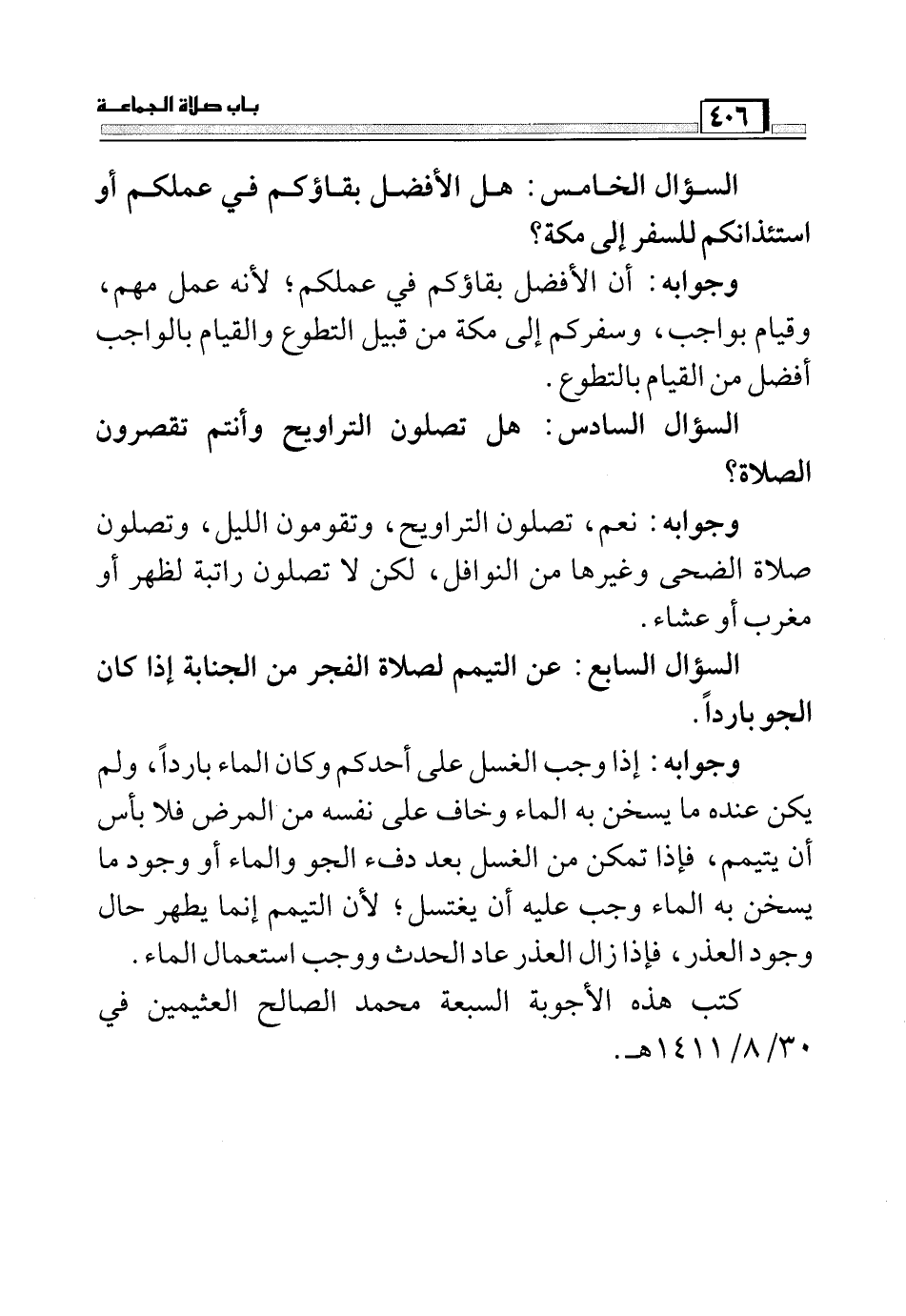 كتب هذه الأجوبة السبعة محمد الصالح العثيمين في 30/8/1411 هـ.