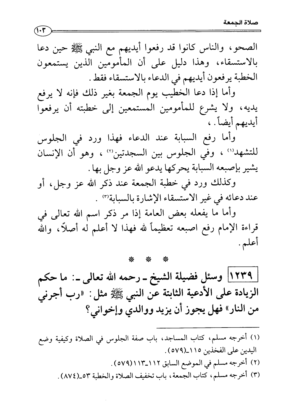 وأما إذا دعا الخطيب يوم الجمعة بغير ذلك فإنه لا يرفع يديه، ولا يشرع للمأمومين المستمعين إلى خطبته أن يرفعوا أيديهم أيضاً.،
