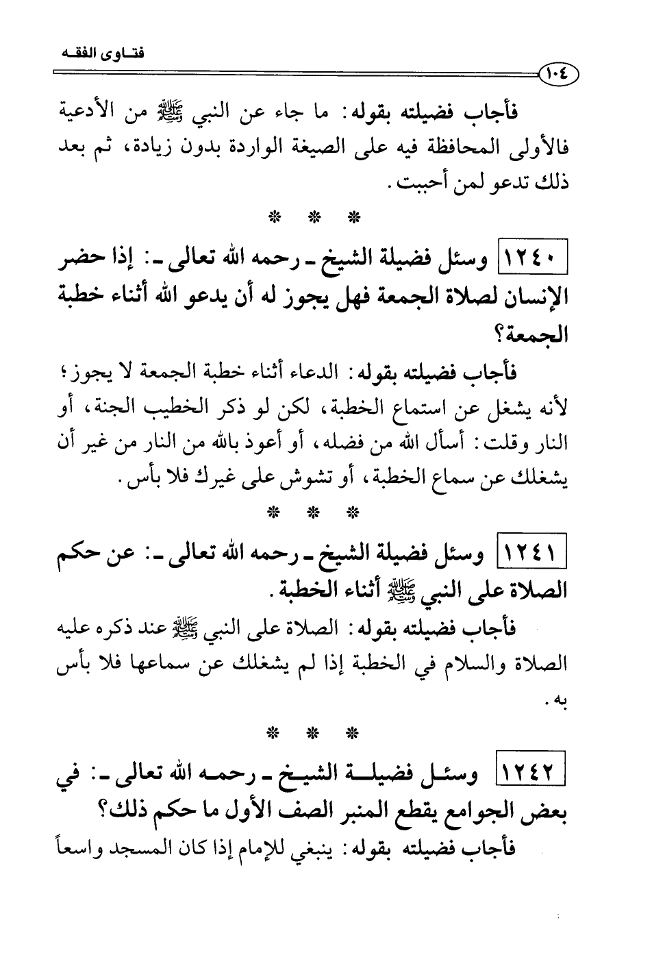 وسئل فضيلة الشيخ - رحمه الله تعالى -: عن حكم الصلاة على النبي صَلَّى اللَّهُ عَلَيْهِ وَسَلَّمَ أثناء الخطبة.