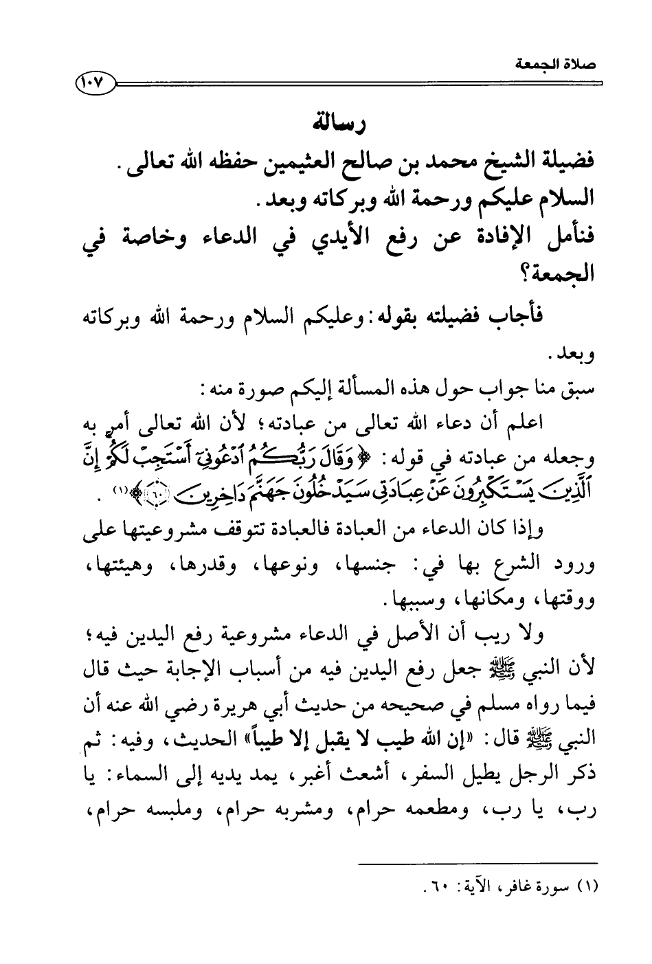 فنأمل الإفادة عن رفع الأيدي في الدعاء وخاصة في الجمعة؟