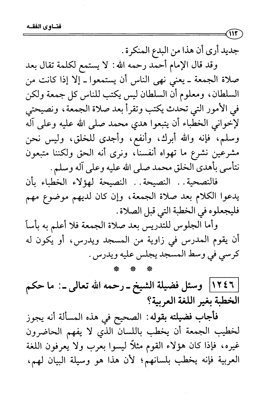وسئل فضيلة الشيخ - رحمه الله تعالى -: ما حكم الخطبة بغير اللغة العربية؟