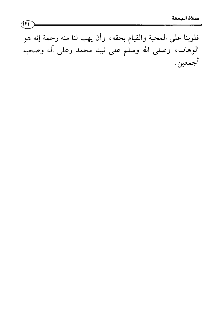 قلوبنا على المحبة والقيام بحقه، وأن يهب لنا منه رحمة إنه هو الوهاب، وصلى الله وسلم على نبينا محمد وعلى آله وصحبه أجمعين.