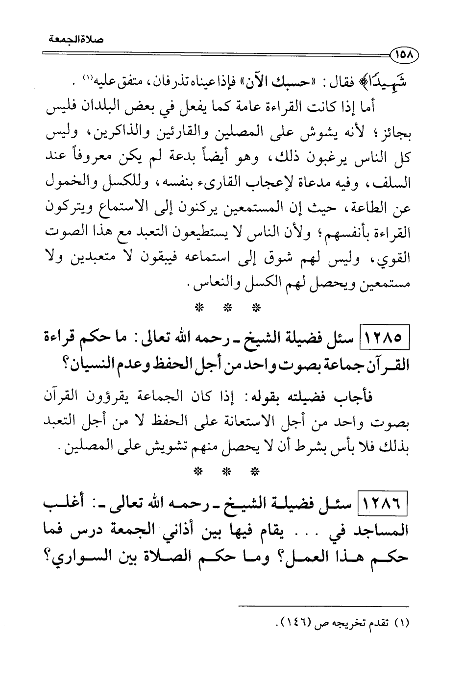 فأجاب فضيلته بقوله: إذا كان الجماعة يقرؤون القرآن بصوت واحد من أجل الاستعانة على الحفظ لا من أجل التعبد بذلك فلا بأس بشرط أن لا يحصل منهم تشويش على المصلين.
