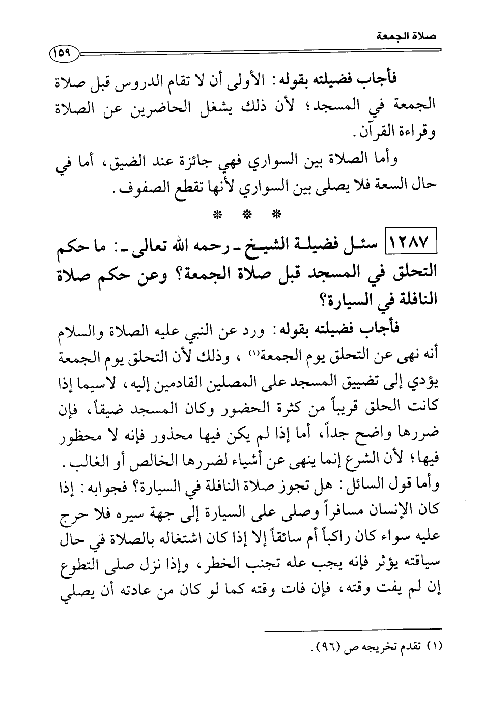 سئل فضيلة الشيخ - رحمه الله تعالى -: ما حكم التحلق في المسجد قبل صلاة الجمعة؟ وعن حكم صلاة النافلة في السيارة؟