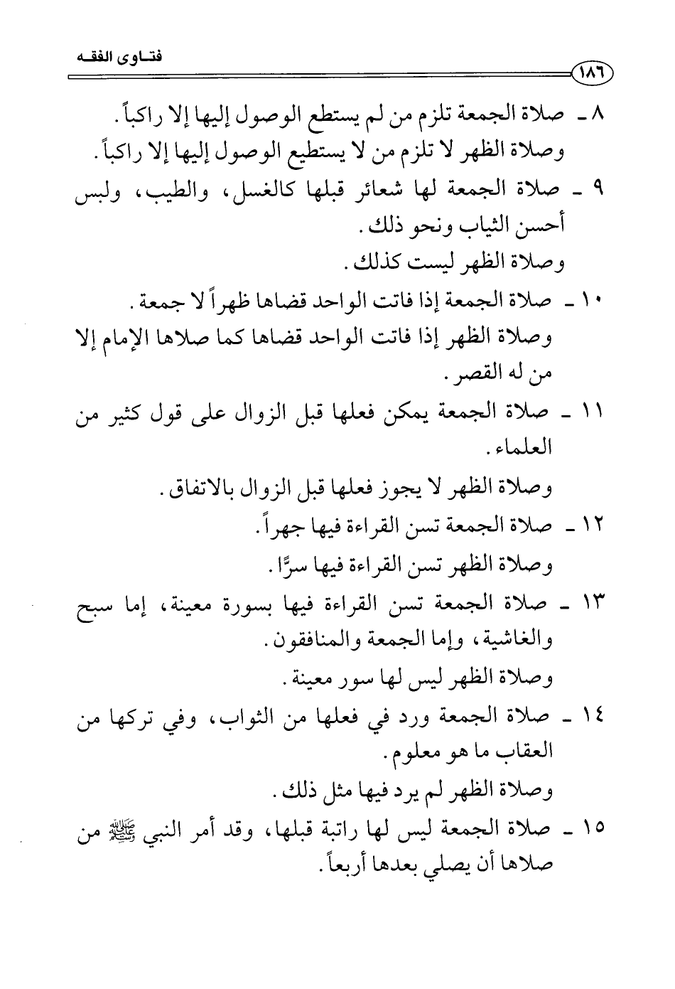 8 صلاة الجمعة تلزم من لم يستطع الوصول إليها إلا راكباً.