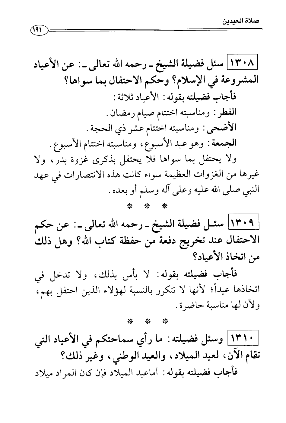 فأجاب فضيلته بقوله: الأعياد ثلاثة: