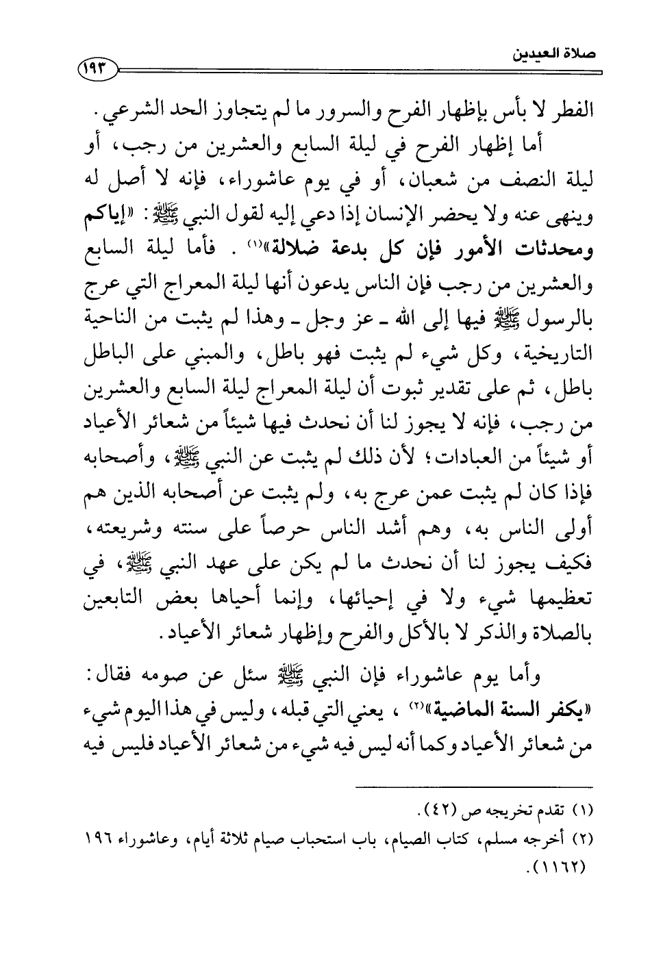 وأما يوم عاشوراء فإن النبي صَلَّى اللَّهُ عَلَيْهِ وَسَلَّمَ سئل عن صومه فقال: «يكفر السنة الماضية» ، يعني التي قبله، وليس في هذا اليوم شيء من شعائر الأعياد وكما أنه ليس فيه شيء من شعائر الأعياد فليس فيه