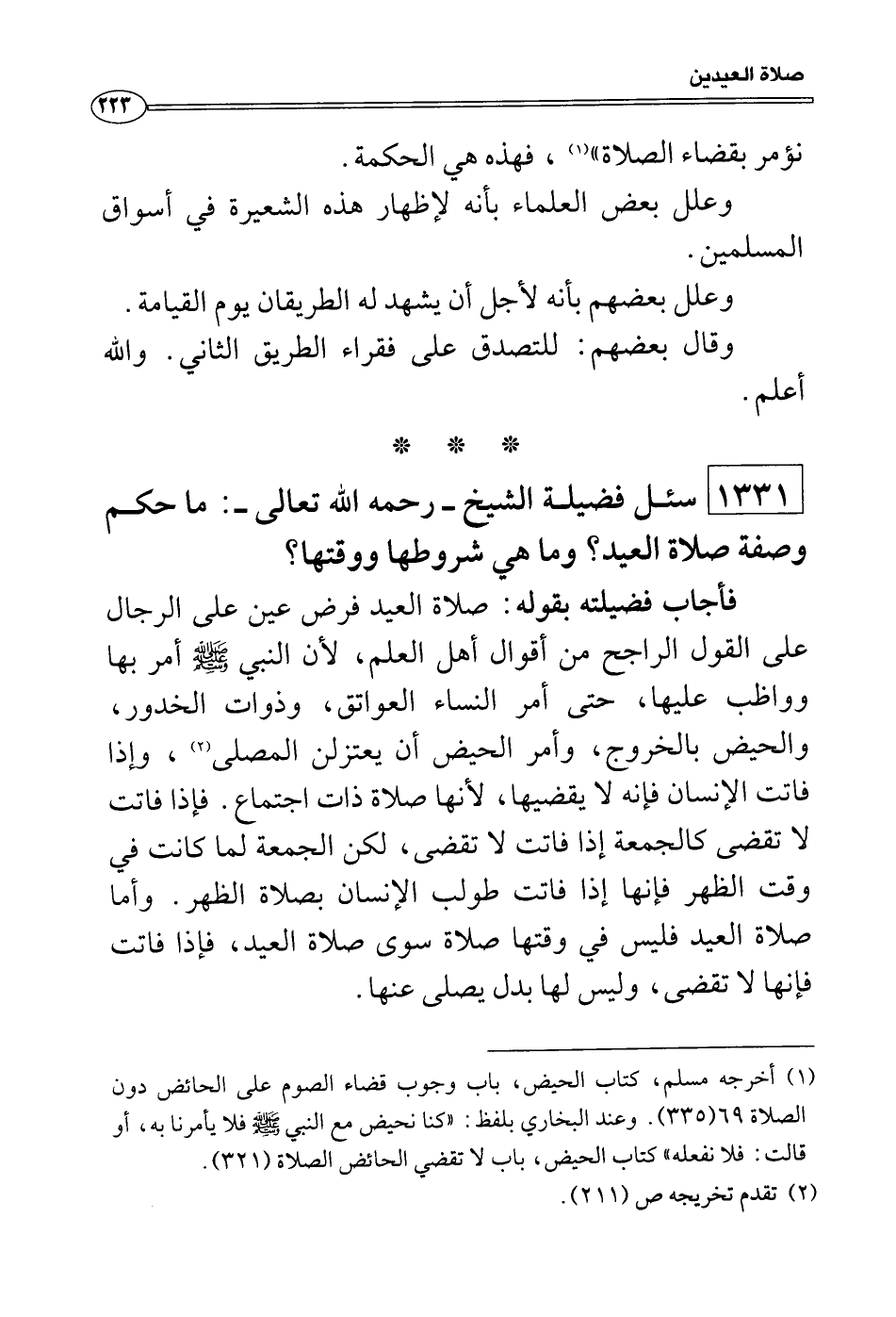 سئل فضيلة الشيخ - رحمه الله تعالى -: ما حكم وصفة صلاة العيد؟ وما هي شروطها ووقتها؟