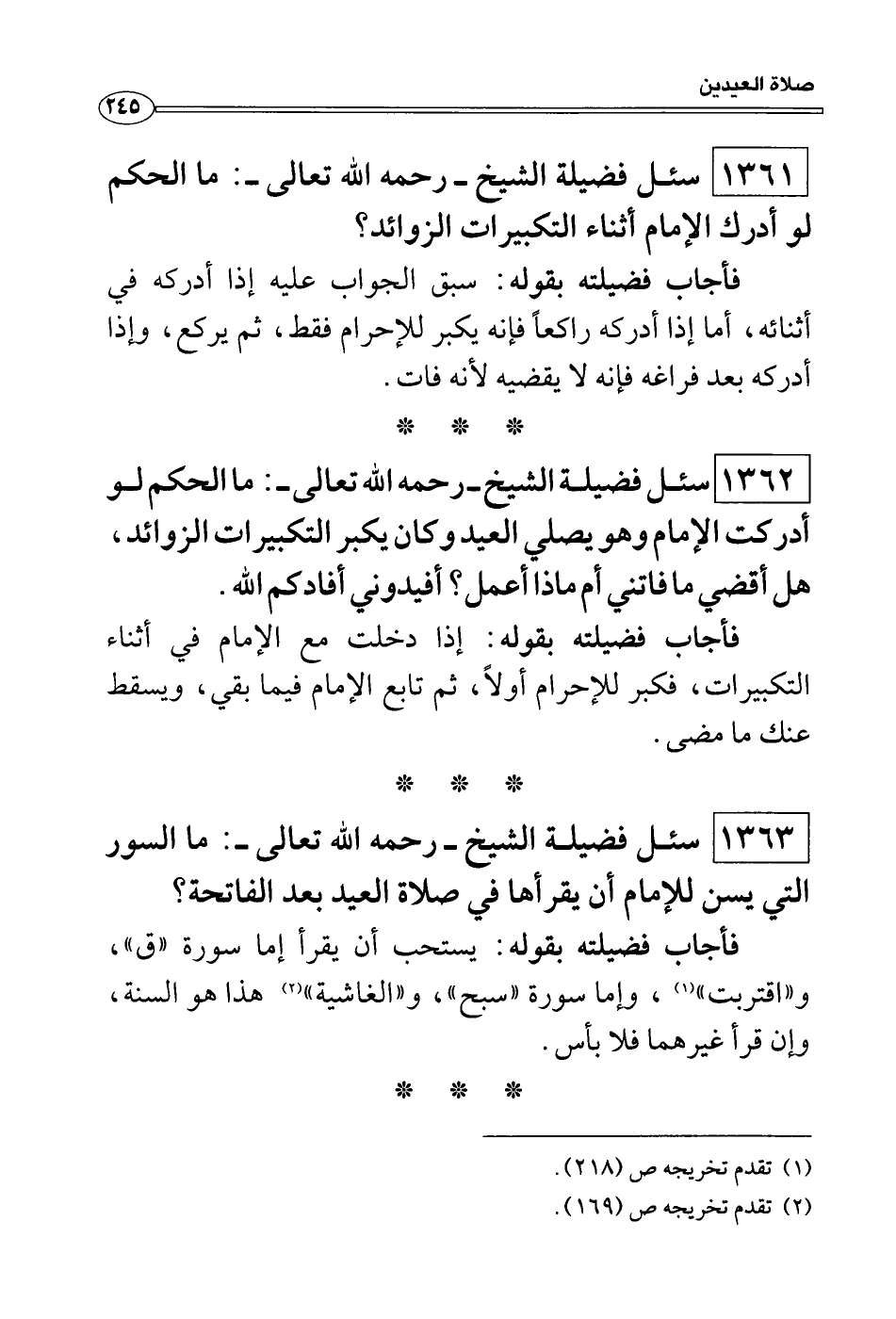 سئل فضيلة الشيخ - رحمه الله تعالى -: ما الحكم لو أدرك الإمام أثناء التكبيرات الزوائد؟