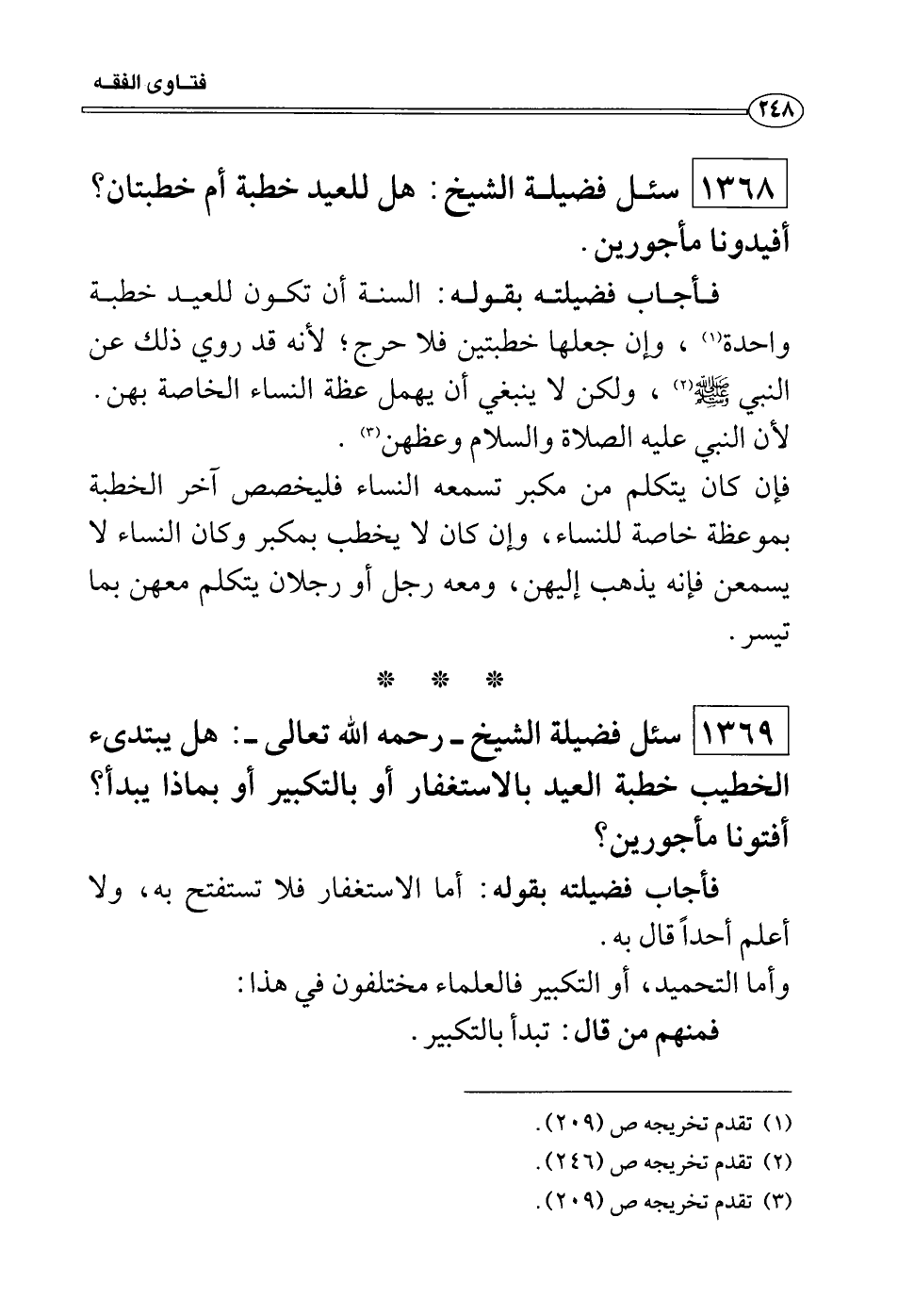 سئل فضيلة الشيخ: هل للعيد خطبة أم خطبتان؟ أفيدونا مأجورين.