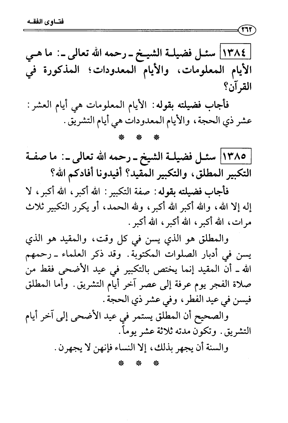 سئل فضيلة الشيخ - رحمه الله تعالى -: ما صفة التكبير المطلق، والتكبير المقيد؟ أفيدونا أفادكم الله؟