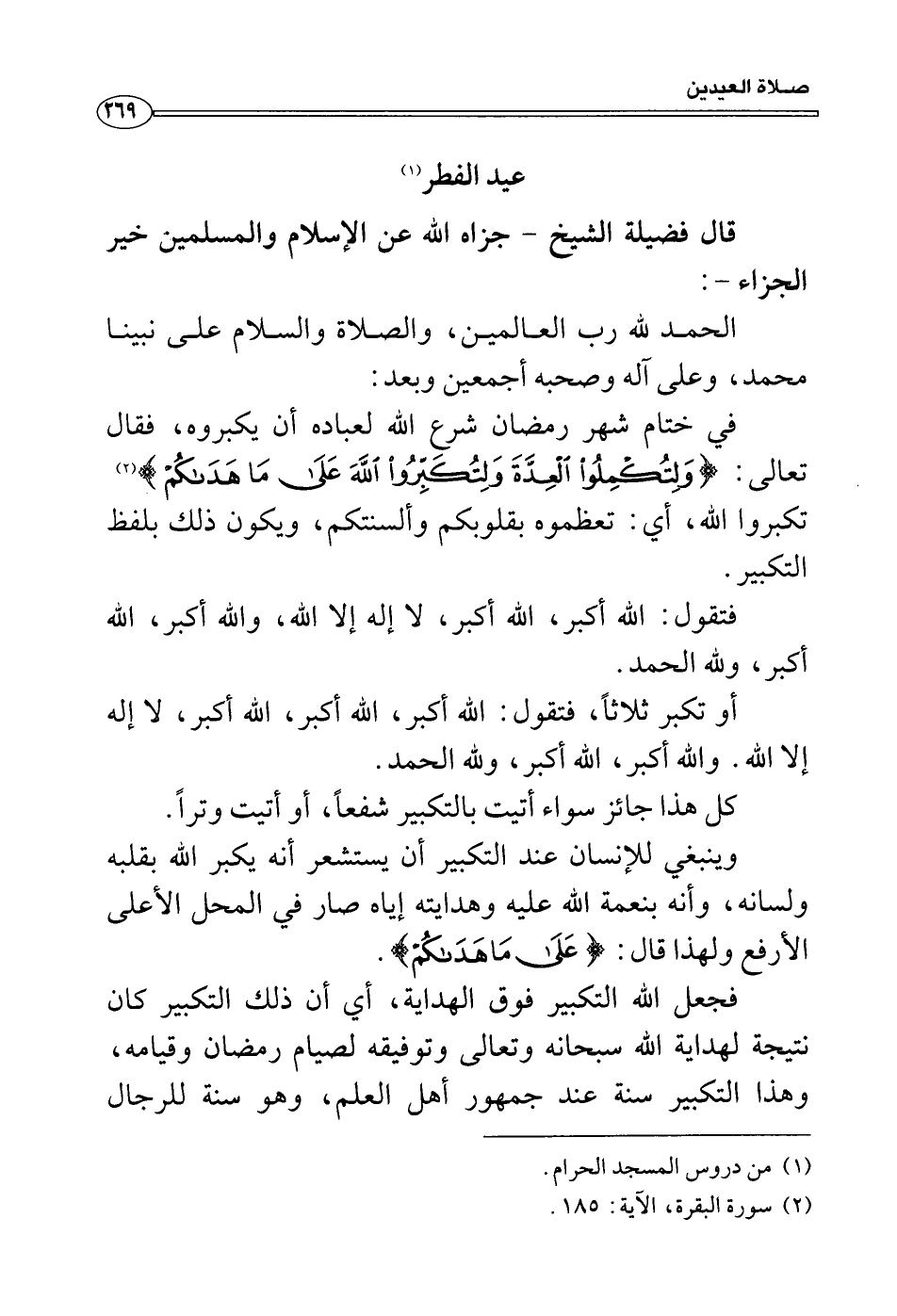 قال فضيلة الشيخ جزاه الله عن الإسلام والمسلمين خير الجزاء: