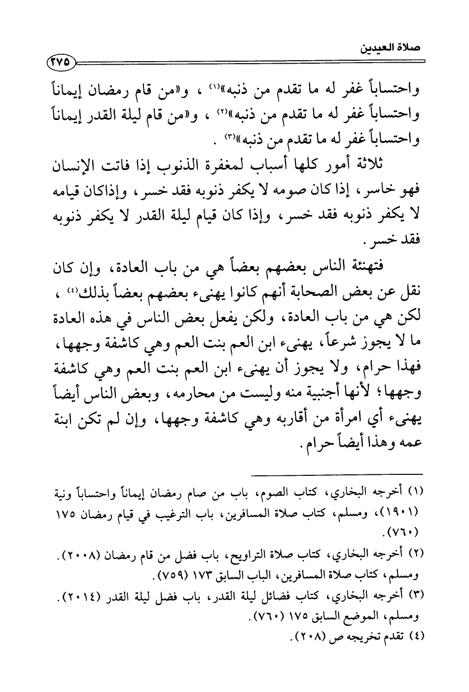 واحتساباً غفر له ما تقدم من ذنبه» ، و «من قام رمضان إيماناً واحتساباً غفر له ما تقدم من ذنبه» ، و «من قام ليلة القدر إيماناً واحتساباً غفر له ما تقدم من ذنبه» .