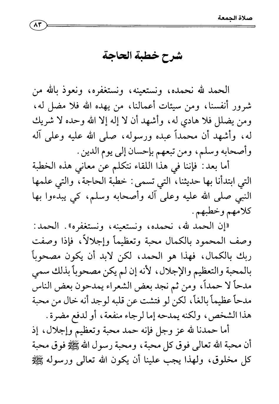 أما حمدنا لله عز وجل فإنه حمد محبة وتعظيم وإجلال، إذ أن محبة الله تعالى فوق كل محبة، ومحبة رسول الله صَلَّى اللَّهُ عَلَيْهِ وَسَلَّمَ فوق محبة كل مخلوق، ولهذا يجب علينا أن يكون الله تعالى ورسوله صَلَّى اللَّهُ عَلَيْهِ وَسَلَّمَ