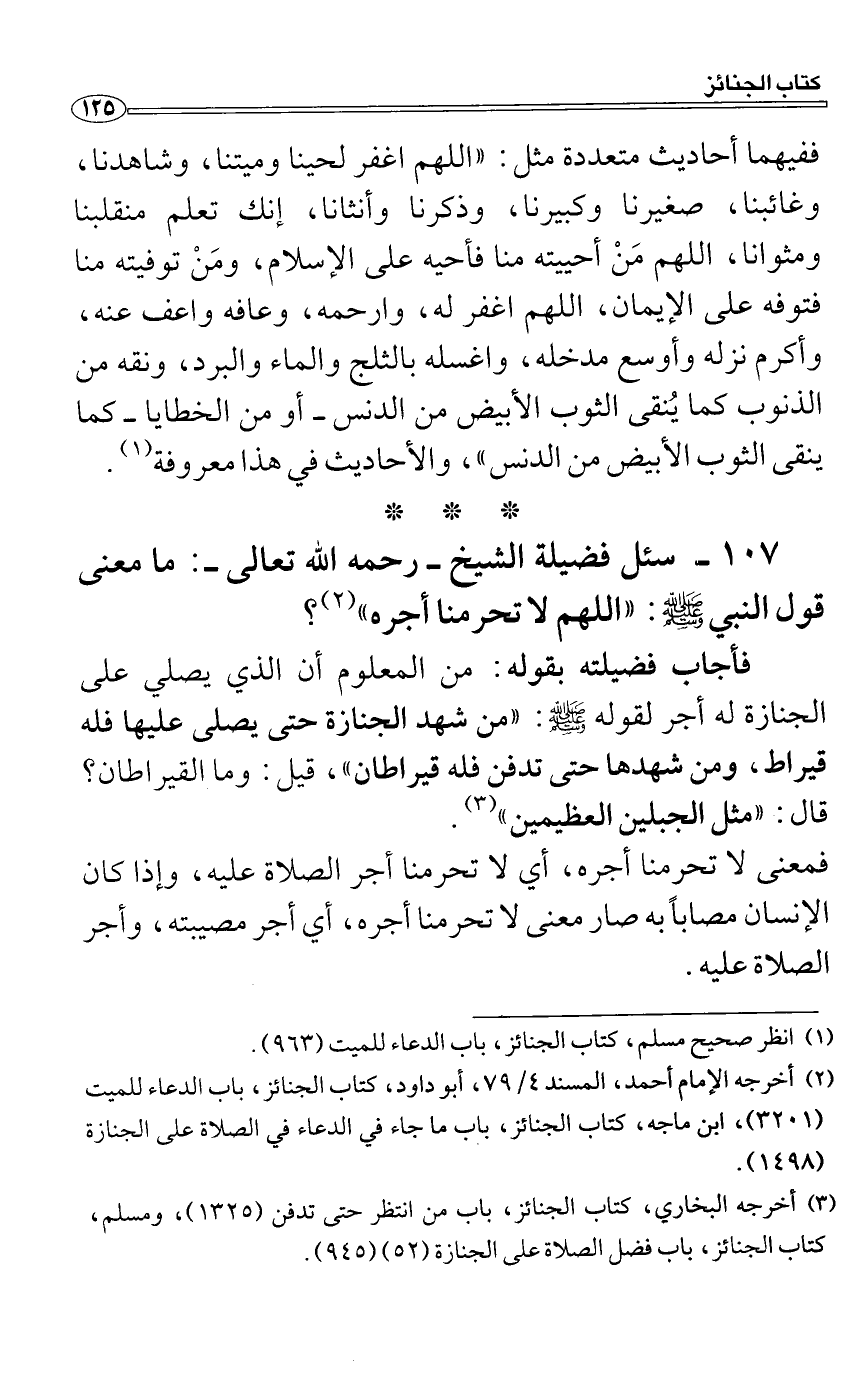 فأجاب فضيلته بقوله: من المعلوم أن الذي يصلي على الجنازة له أجر لقوله صَلَّى اللَّهُ عَلَيْهِ وَسَلَّمَ: "من شهد الجنازة حتى يصلى عليها فله قيراط، ومن شهدها حتى تدفن فله قيراطان"، قيل: وما القيراطان؟ قال: "مثل الجبلين العظيمين".